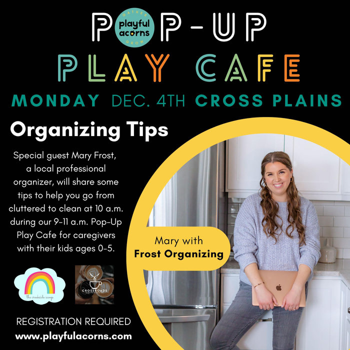 - December 4 (9-11 a.m. Monday): Pop-Up Play Cafe - Cross Plains featuring special guest Frost Organizing at 10 a.m., The Creekside Scoop ($10, RSVP)