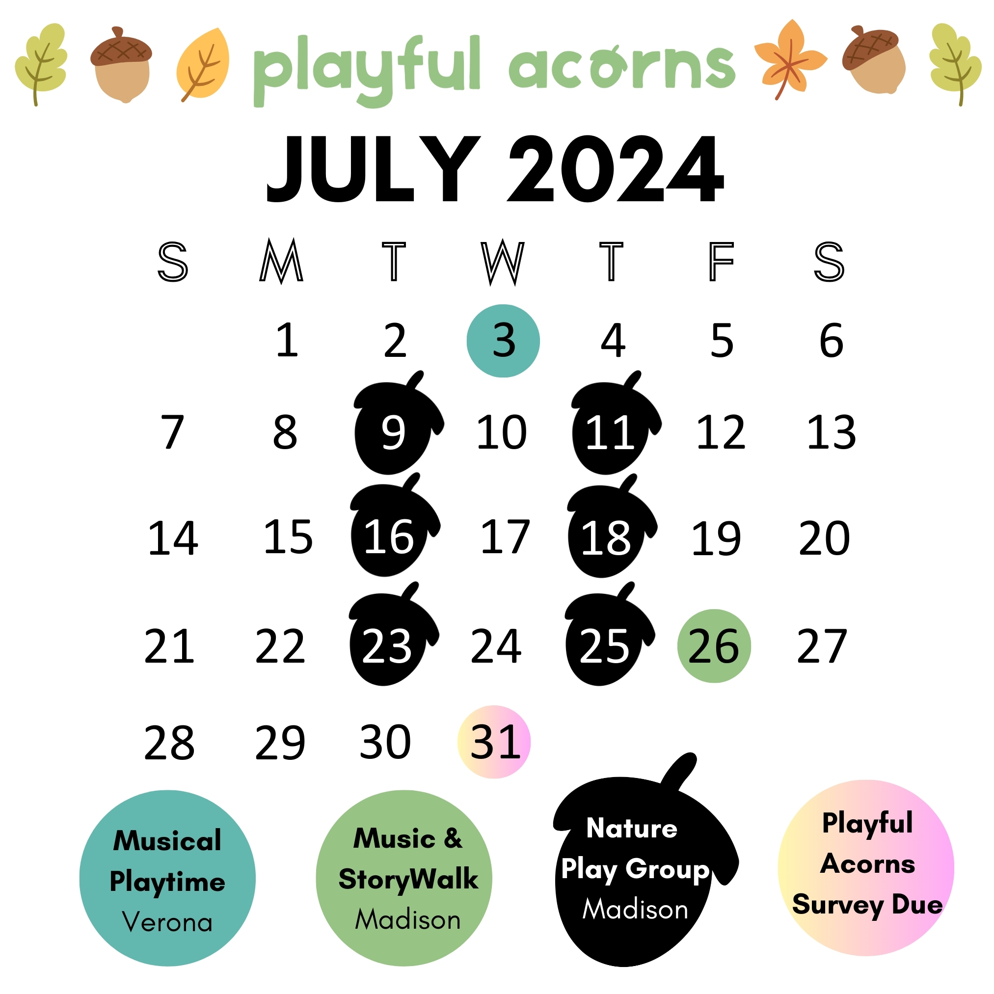 - Wednesday, July 31st: Playful Acorns Survey Due