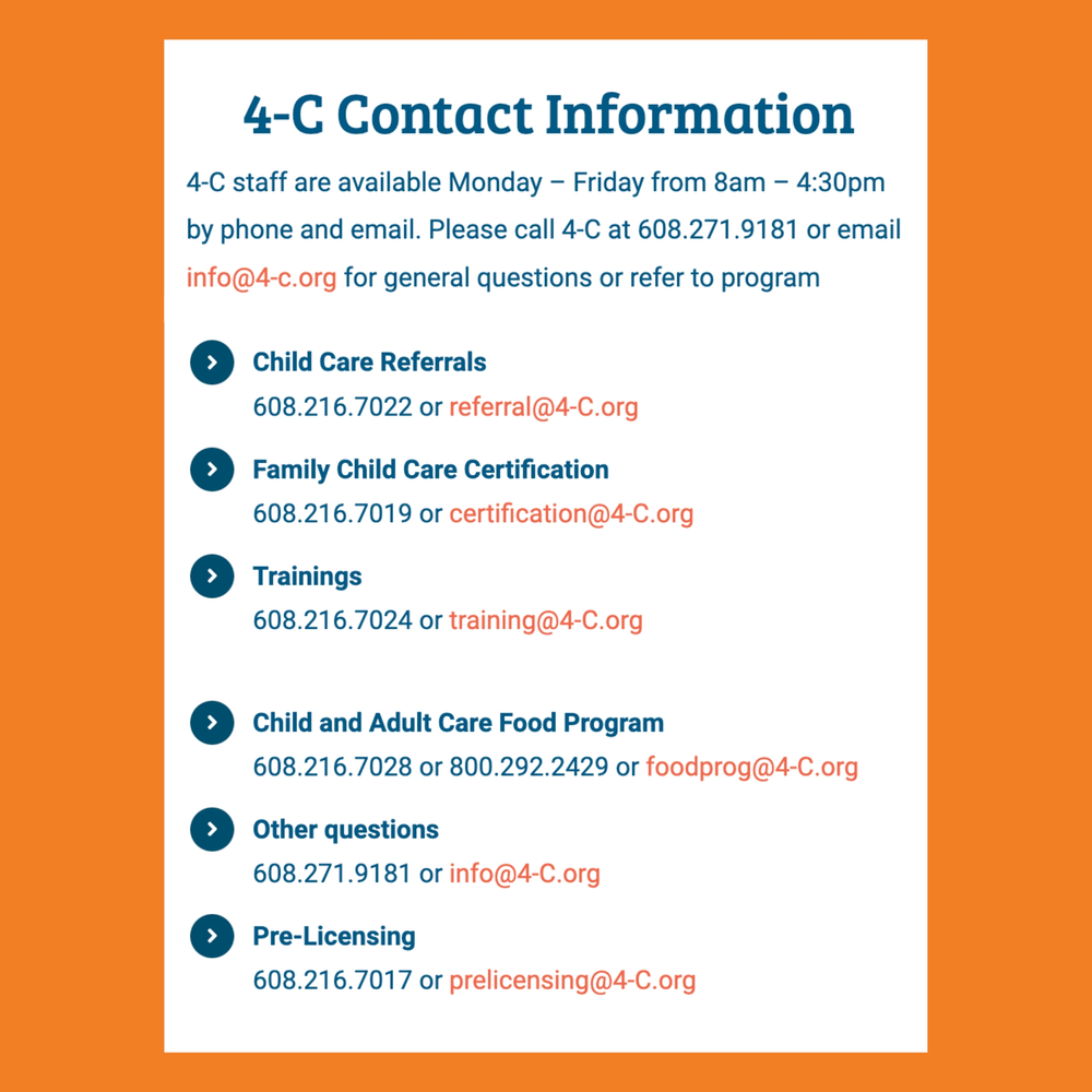 4-C is one of five Family Resource Centers in the Madison area. You can learn more about the others as well as the Five Strengths here: