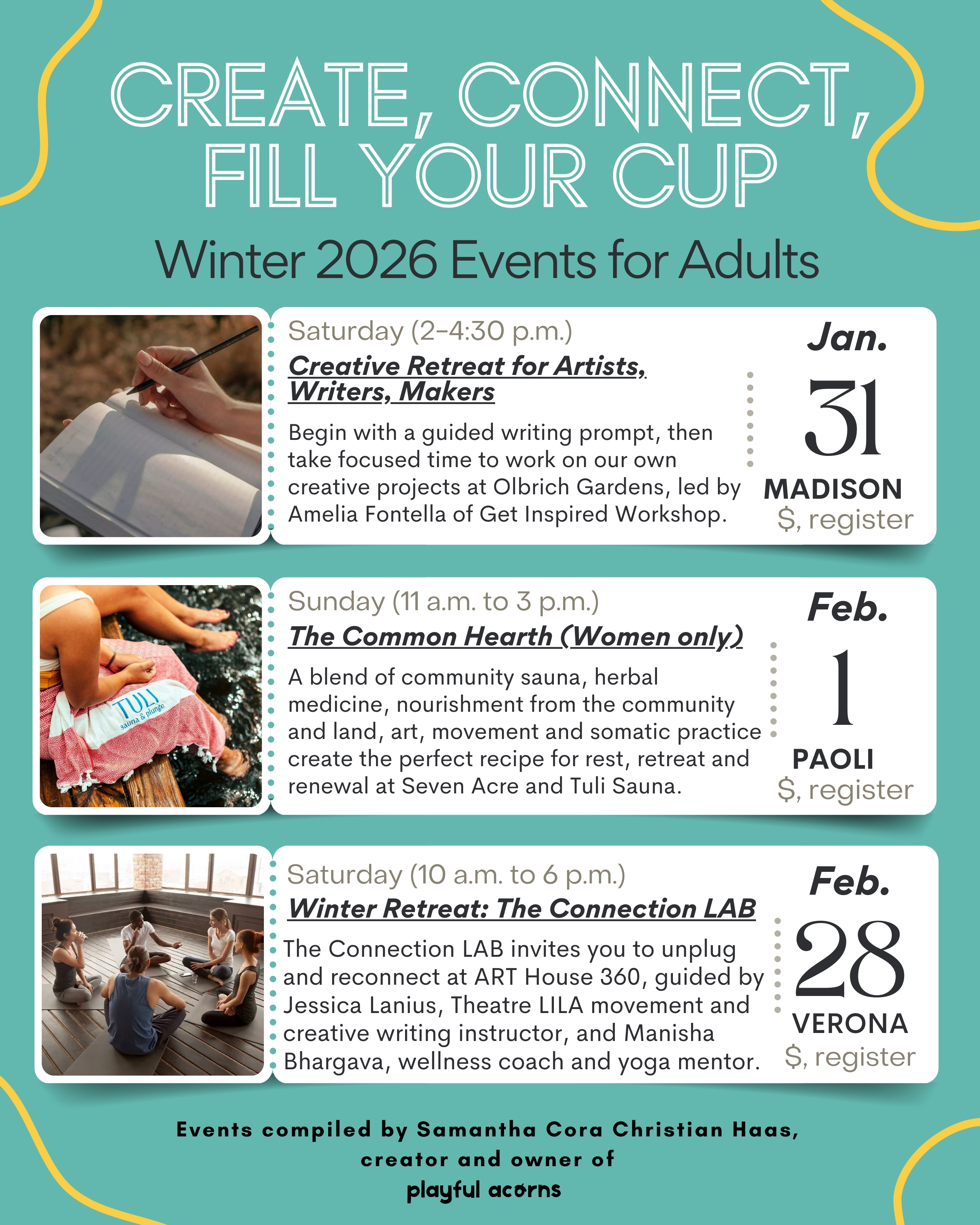 I also just updated our family activity guides and events for adults to include some creative, fun, and nature-based events for January-March 2026. Here’s just a glimpse!