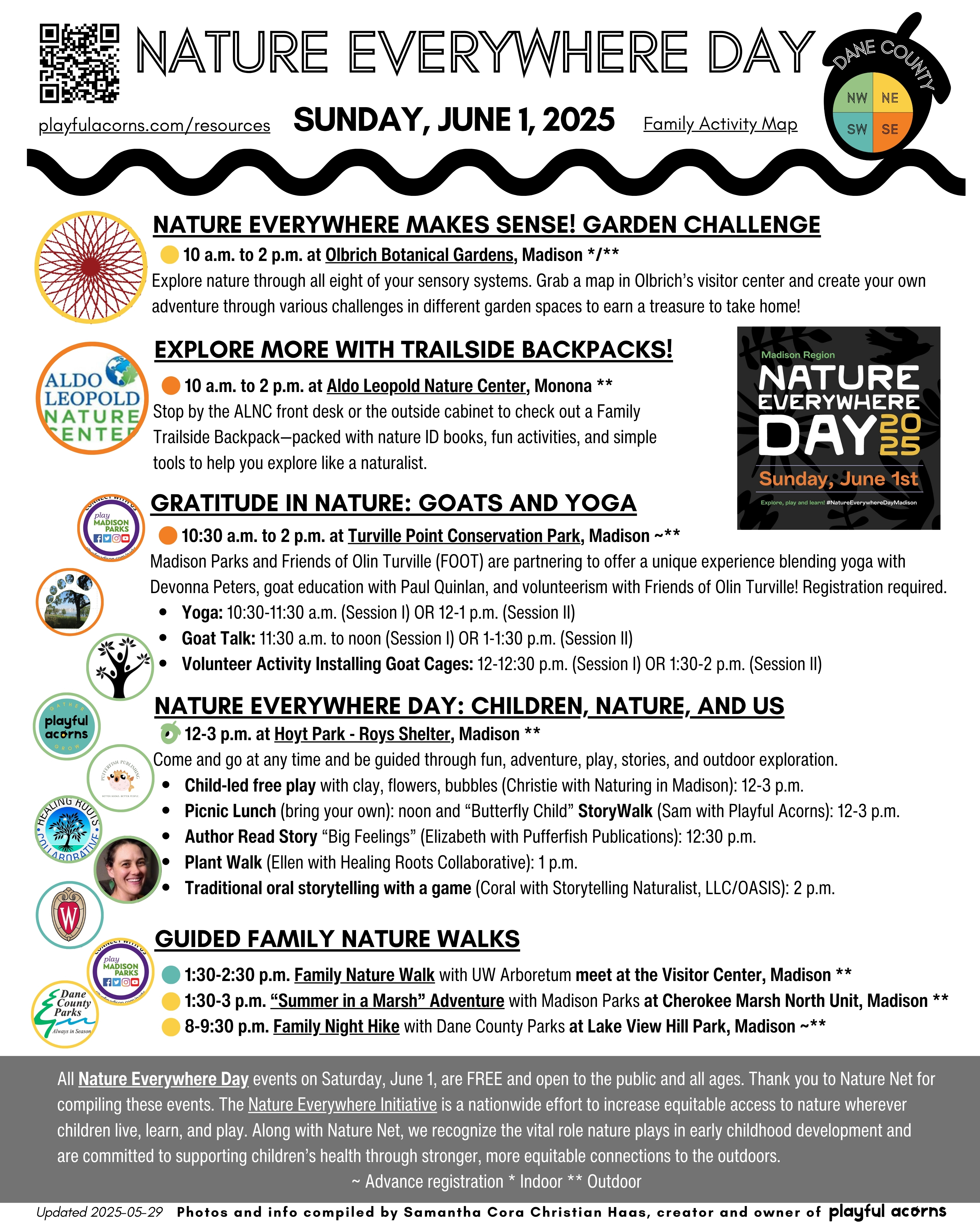 I’m looking forward to partnering with Storytelling Naturalist Coral Conant Gilles, Ellen Sims with Healing Roots Collaborative, Christie Moser with Naturing in Madison, and Elizabeth Seeliger with Pufferfish Publications from 12-3 p.m. Sunday, June 1st at Hoyt Park! Bring a lunch, listen to stories, go on a plant walk, play, and create! Here’s a glimpse of other FREE events happening that day, too!