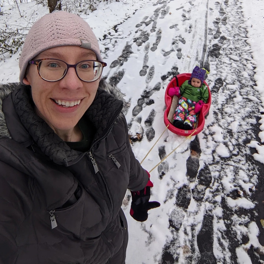 Nov. 26th: Seems like just yesterday I was pulling Z in her red wagon in spring, and today I'm tugging her around in her red sled in winter. Hope you could get outside and enjoy the fresh snow!