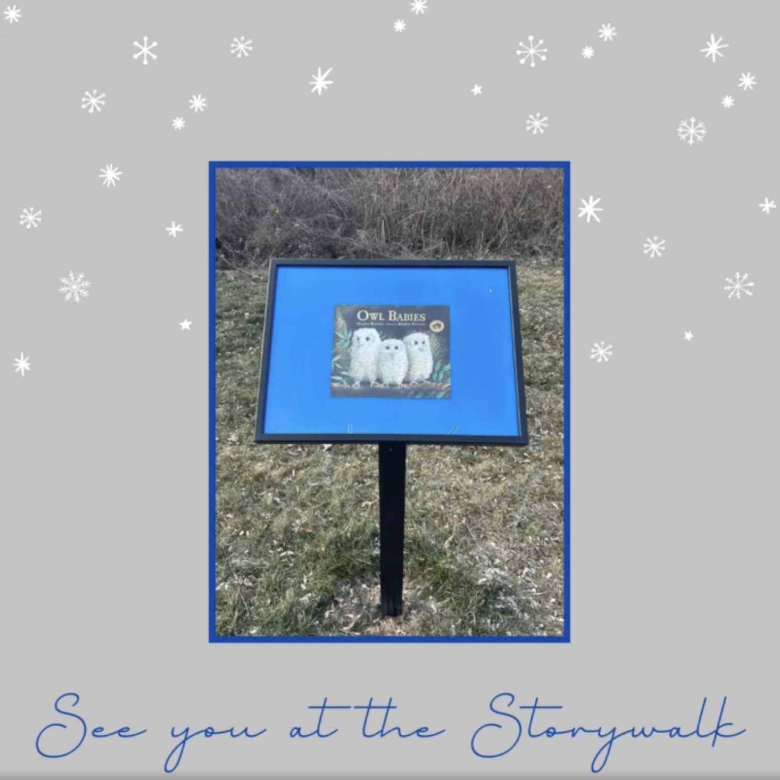 Don't forget to take a stroll past the storywalk to read a winter classic, "Owl Babies" by Martin Waddell and illustrated by Patrick Benson! When three baby owls awake one night to find their mother gone, they can’t help but wonder where she is. What is she doing? When will she be back? What scary things move all around them? This tender tale reminds kids that mommy always comes back. Learn more here.