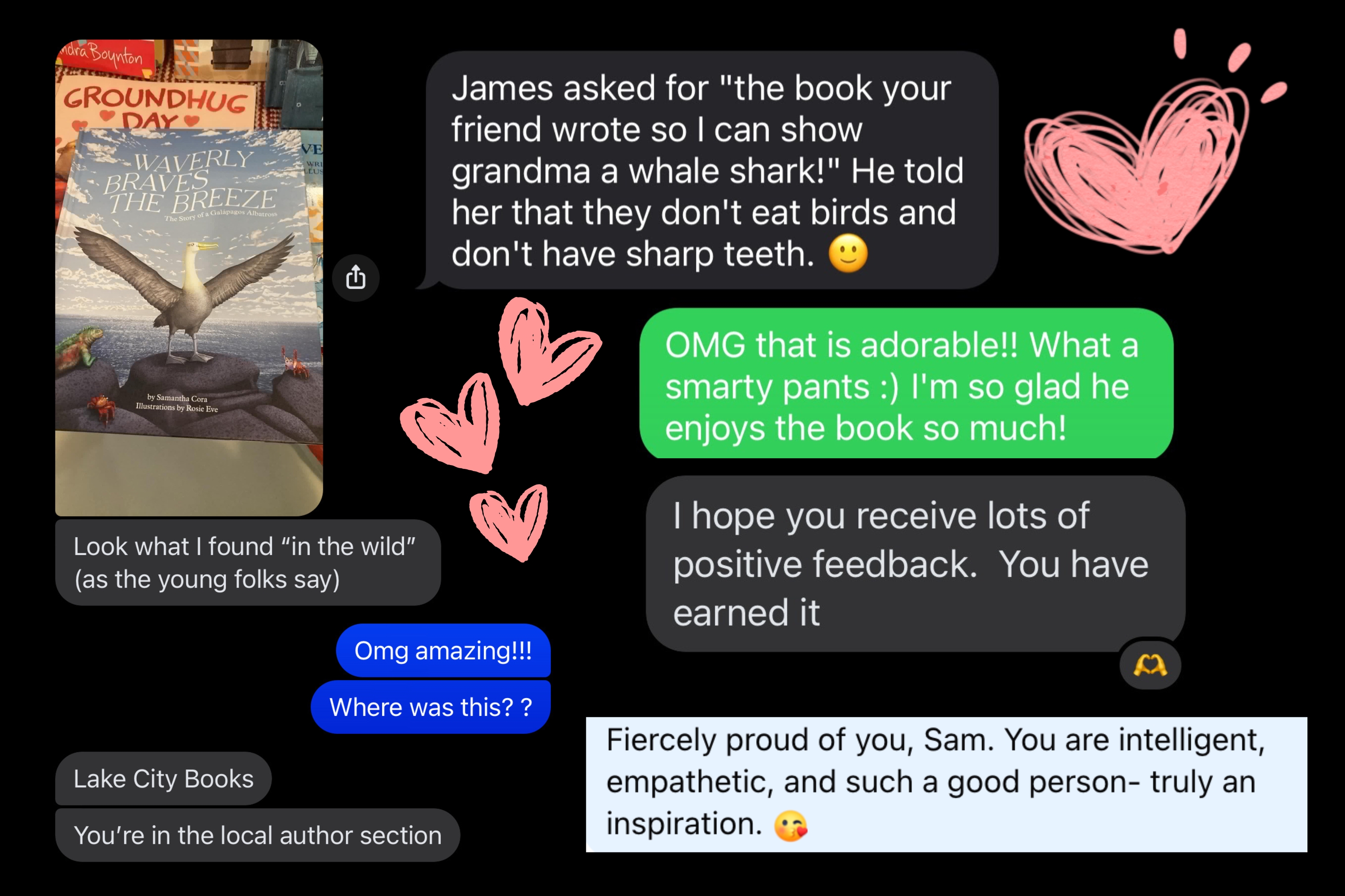 Wondering how you can help support my author journey, especially as Waverly’s story is about to turn 1 this month? Here are a few ways, though even just telling me to keep writing and sharing my story is amazing to hear. I treasure photos and encouraging messages like these from you and your kiddos. You make my heart soar! Thank you!