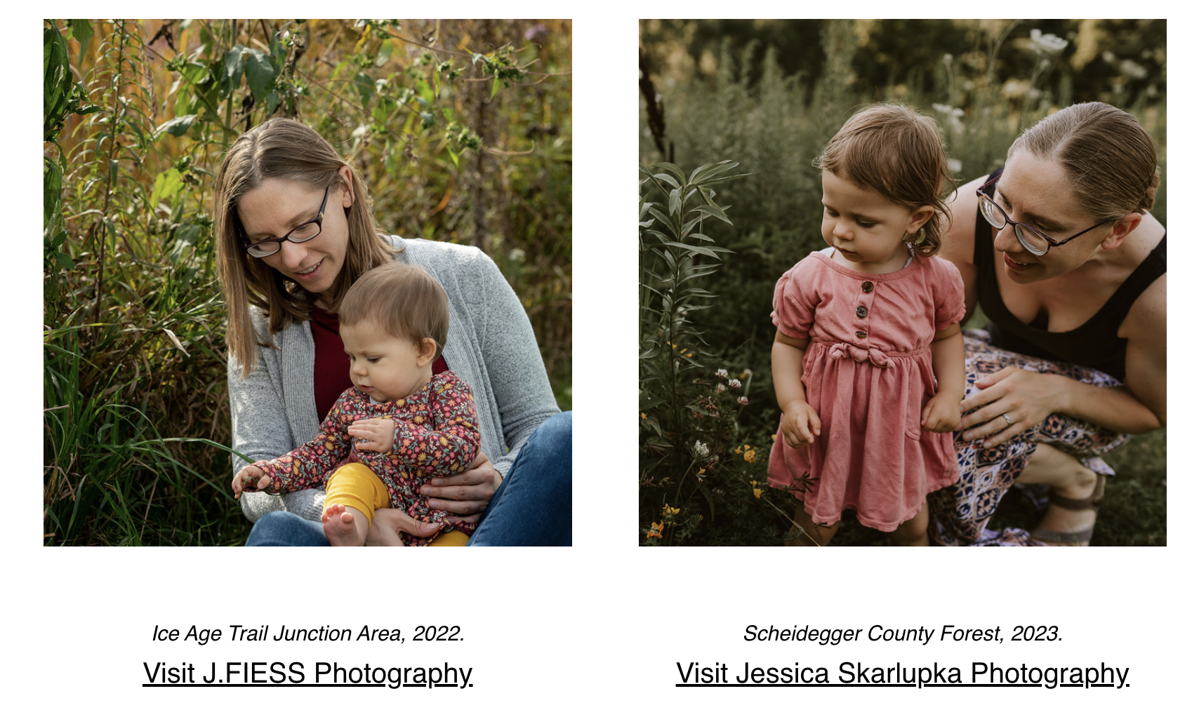 As a former lifestyle photographer, I'm used to this time of year being popular for families to schedule outdoor photos. It's a beautiful season when the leaves are changing and the sunlight seems more golden. Plus, it's great to have updated pictures to include in holiday cards. While I no longer take on this type of work, I am happy to give recommendations for some outstanding family photographers, including two whose images appear on the Playful Acorns website. My cousin Jessica Fiess-Hill has an incredibly creative eye for photography and graphic design, and she's been my go-to photographer for my engagement, wedding, and now family photos. She even designed the Playful Acorns logo! I was also lucky to virtually meet another Jessica recently through the Moms Collective of Dane County group. Jessica Skarlupka offered mothers a free photoshoot with their babes to celebrate World Breastfeeding Week. How generous and awesome is that? I'm so glad I (temporarily) got over my aversion to being in front of the camera instead of behind it, because I treasure these special moments with Z. I highly recommend both of these amazing photographers!