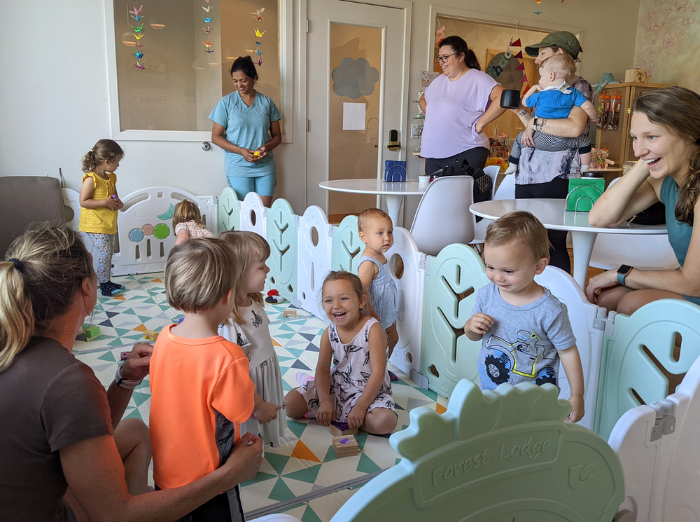 I loved seeing kids playing together and their caregivers connecting over a cup of coffee at the first trial run of the Playful Acorns pop-up play cafe.