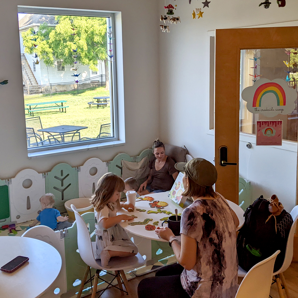 If you've never been to these businesses before, they are both owned by an amazing human being (and mother) Katy Ripp and co-located in the same building at 2020 Main St, Cross Plains. When I started sharing my idea for a pop-up play cafe with my close friends, including my doula Denise Booth, business mentor Jamie Gale, and friend Katie Hensel, they all encouraged me to connect with Katy, and I'm so glad I did! Now I've also gotten to know Katy, Abby, and several other people who work at the coffee and ice cream shops a bit more, and everyone has been delightful. When you walk in, I hope you'll say hello! I'm so grateful that our paths have crossed.