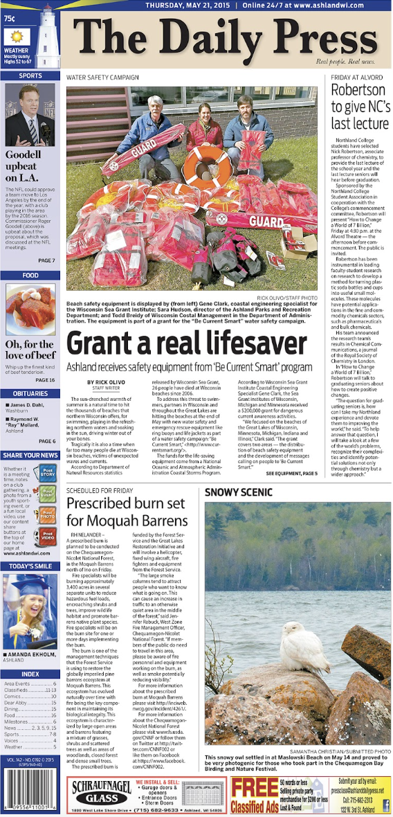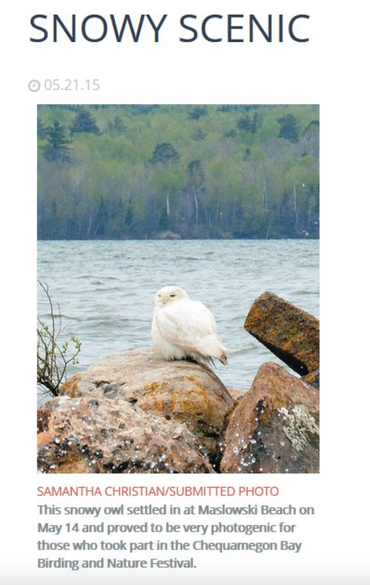 Today, the Ashland Daily Press newspaper published the photo I took of a snowy owl during the Chequamegon Bay Birding and Nature Festival last week.