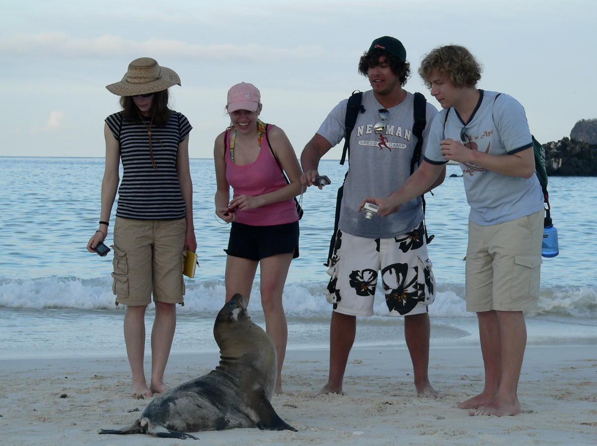 January 2009 class trip with St. Norbert College and Macalester College students to Ecuador (at left, on the equator) and the Galapagos Islands (at right, on Bartolomé Island).