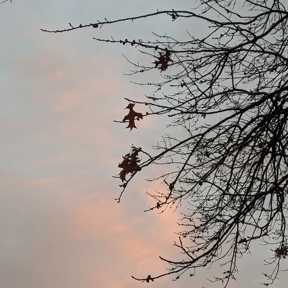 I looked up at the tree and a few leaves were still clinging to the ends of the branches. I scanned the horizon and most other trees were bare. Except, just a stone's throw away, another type of oak was still nearly full, its leaves a golden hue from the setting sun. It was a poignant reminder that we are all on our own timeline. Our own path. And yet, we are all interconnected. We share the same environment. Soil. Water. Sun. Air.